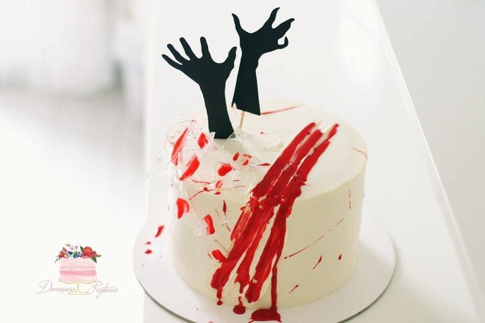 🩸 Tort horror cu mâini în sânge – pentru petreceri cu un twist mai intens.