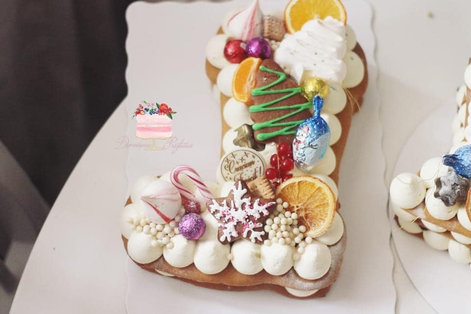 Șabloan pentru torturi cu foi de miere cu cizma lui Moș Crăciun.