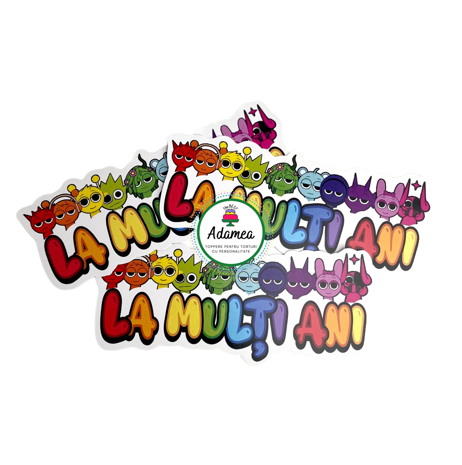Topperul de tort La mulți ani cu personajele Sprunki aduce explozie de culoare, energie și veselie pe orice tort de aniversare. Cu un design plin de personalitate și expresii simpatice, această plăcuță este alegerea perfectă pentru copiii care adoră universul Sprunki și decorurile jucăușe. Topperul are 14 cm lățime și 6,5 cm înălțime, fiind dimensiunea ideală pentru torturile aniversare de orice mărime. Este realizat din carton premium lucios, imprimat color doar pe față (spatele este alb), cu decupaj precis și margini curate. Un topper ușor, rezistent și gata să transforme tortul într-un punct de atracție la orice petrecere!
