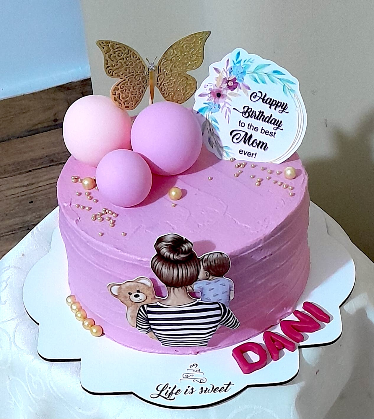 Topper din carton cu mesajul Happy Birthday to the best mom ever, în cerc fain decorat cu flori. Topperul este texturat doar pe o parte, spatele lui fiind alb. Are aproximativ 9cm diametru. Se livrează montat pe băț din lemn/bambus.