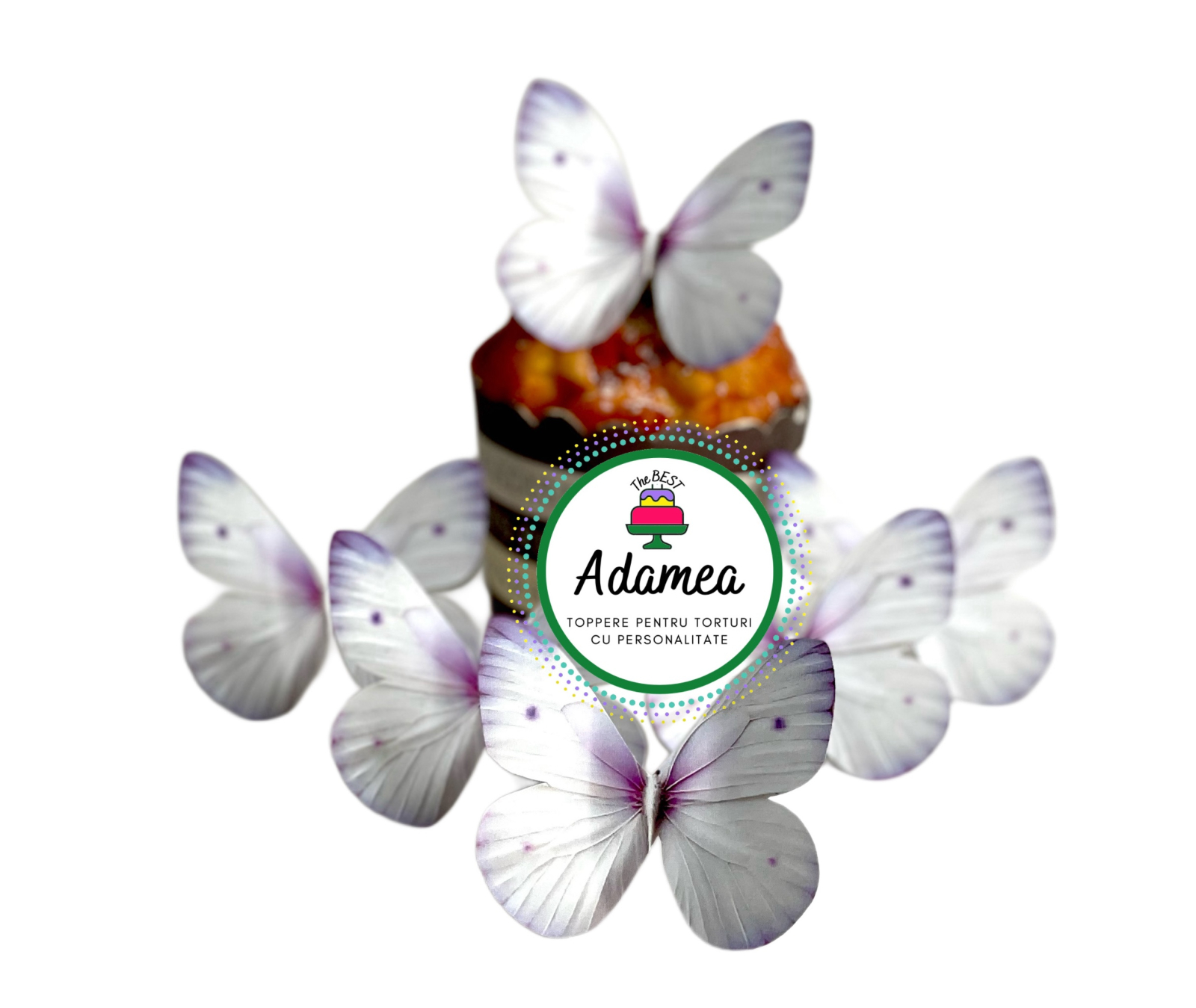 Un set poetic și aerat de 6 fluturi decorativi, în nuanțe delicate de alb cu inserții fine mov, creat pentru torturi care spun o poveste despre eleganță, feminitate și rafinament. Forma ușor tridimensională a aripilor oferă un efect vizual natural, ca și cum fluturii s-ar fi așezat ușor pe tort.