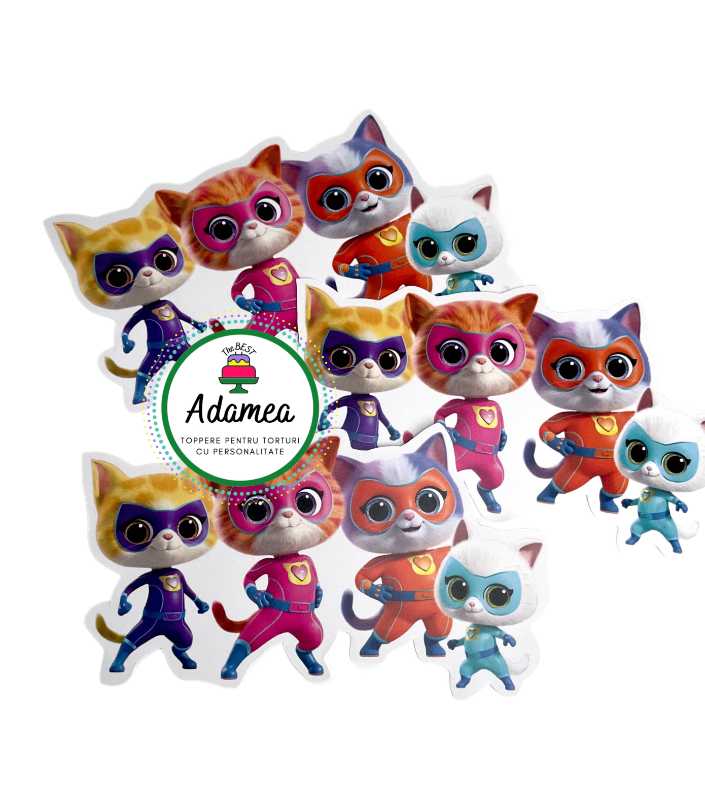 🎂 Perfect pentru torturi de copii, petreceri tematice și evenimente pline de energie, topperul Adamea cu super pisicuțele transformă orice tort într-o mică scenă de acțiune!