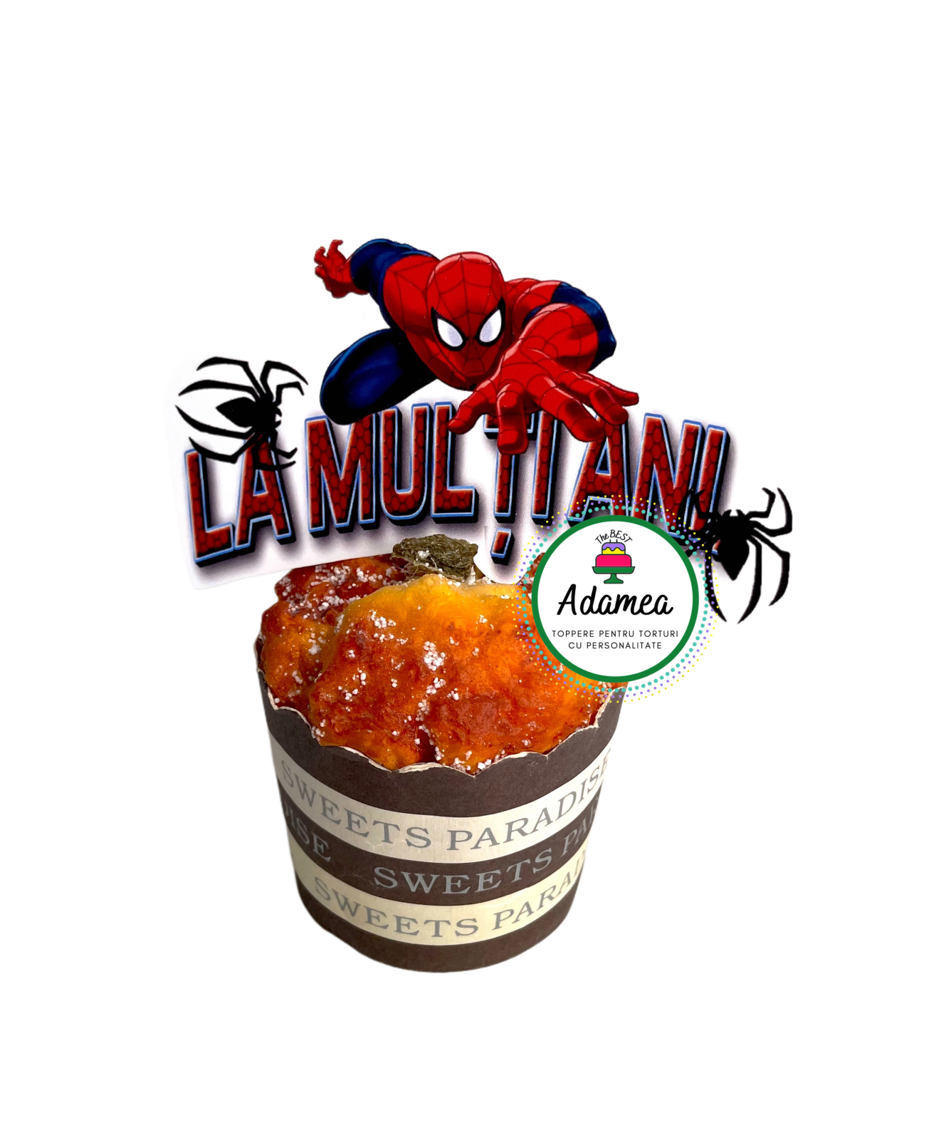 Adaugă o notă plină de acțiune tortului aniversar cu acest topper cu stegulet „La mulți ani!” inspirat din universul Spiderman 🕸️