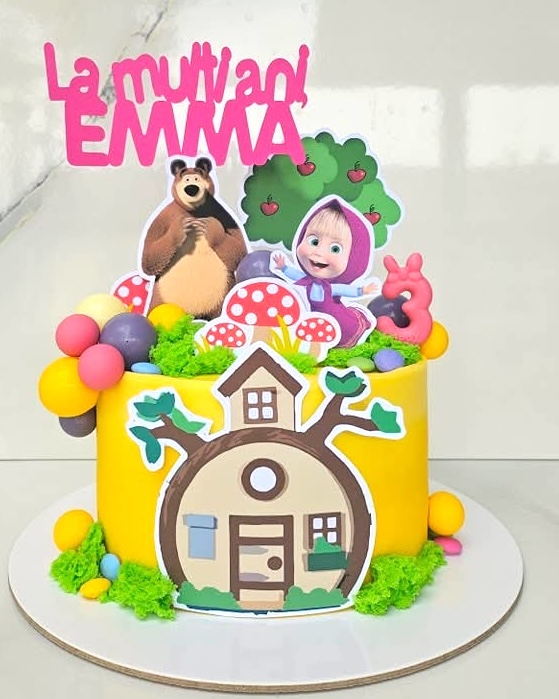 Adaugă un strop de magie tortului cu această suită tematică Masha și Ursul, perfectă pentru aniversările celor mici! Setul conține elemente texturate pe o singură parte, decupate manual, pentru un decor fermecător inspirat din lumea poveștilor.