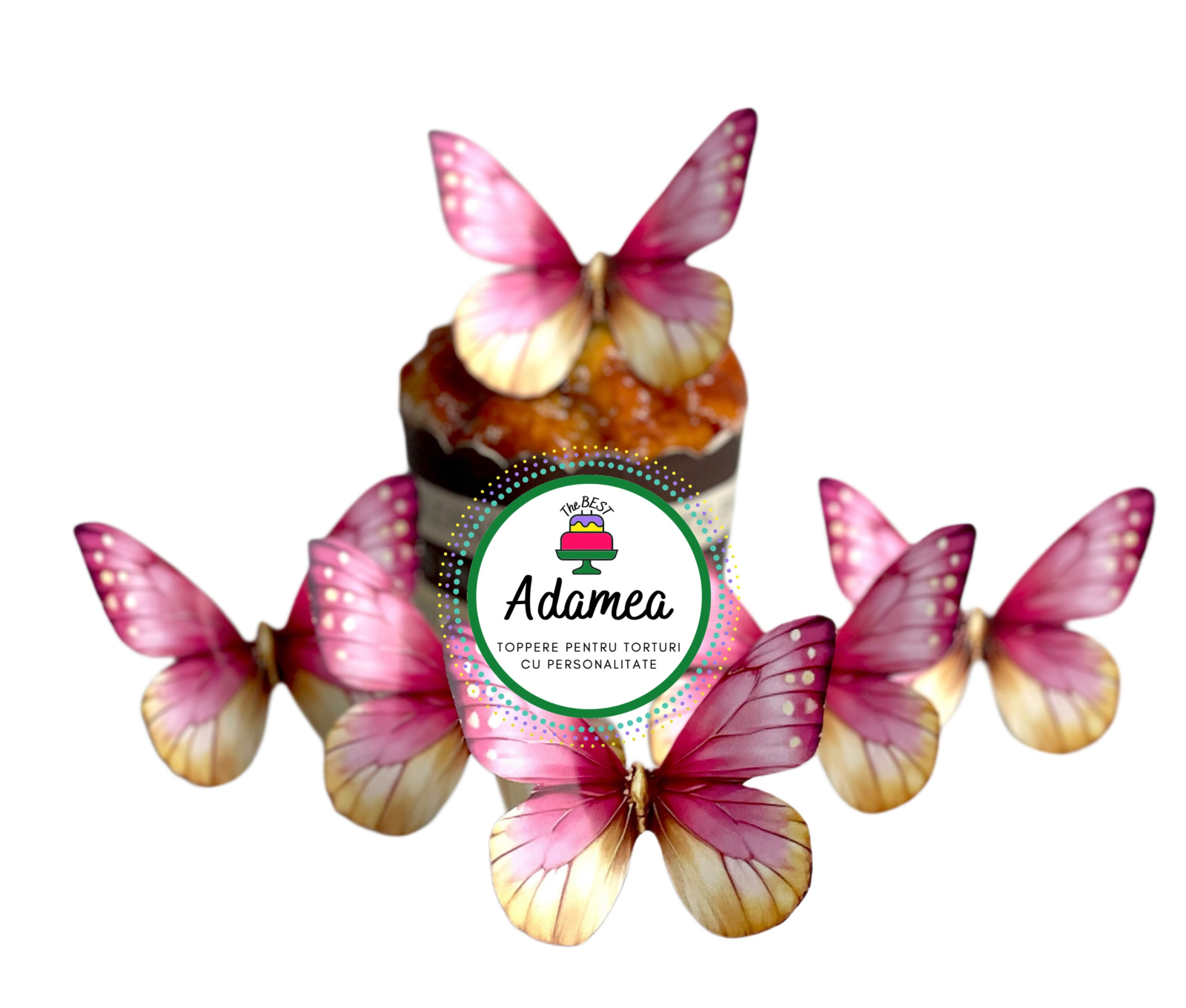 Un set fermecător de 6 fluturi decorativi în nuanțe de roz delicat și galben pastel, inspirați de lumina blândă a primăverii și de eleganța naturală a florilor înflorite. Tranzițiile fine de culoare și aspectul aerat al aripilor oferă tortului un efect cald, luminos și plin de prospețime.