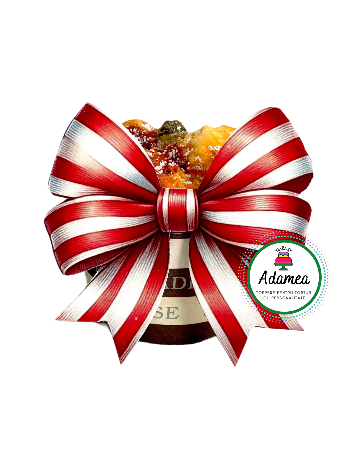 Topperul frontal Fundiță roșu–alb în dungi – 10 × 10 cm este un decor spectaculos, luminos și versatil, perfect pentru torturile tematice de Crăciun, iarnă, cadouri festive sau chiar pentru deserturi cu aer romantic (martie, Valentine’s, evenimente speciale).