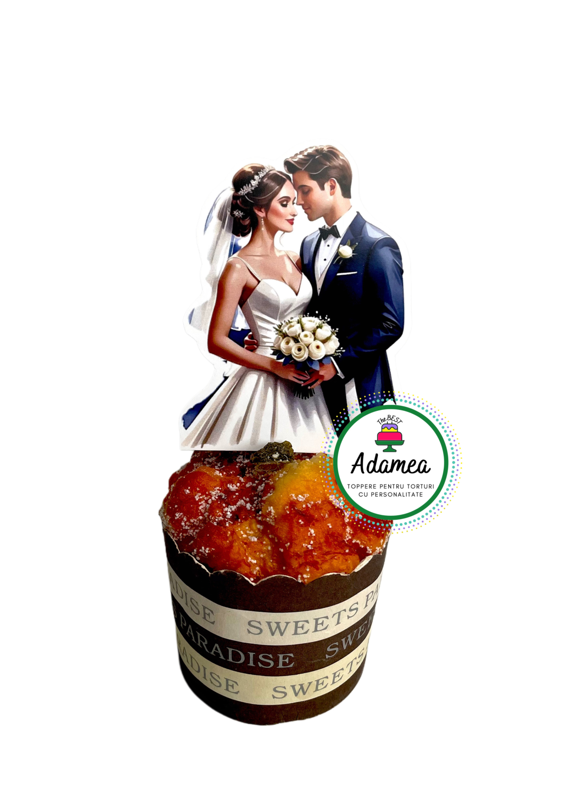 Realizat din carton premium, imprimat clar și precis, acest topper este perfect pentru torturile de nuntă, logodnă sau aniversări de cuplu, completând perfect decorul romantic al evenimentului.