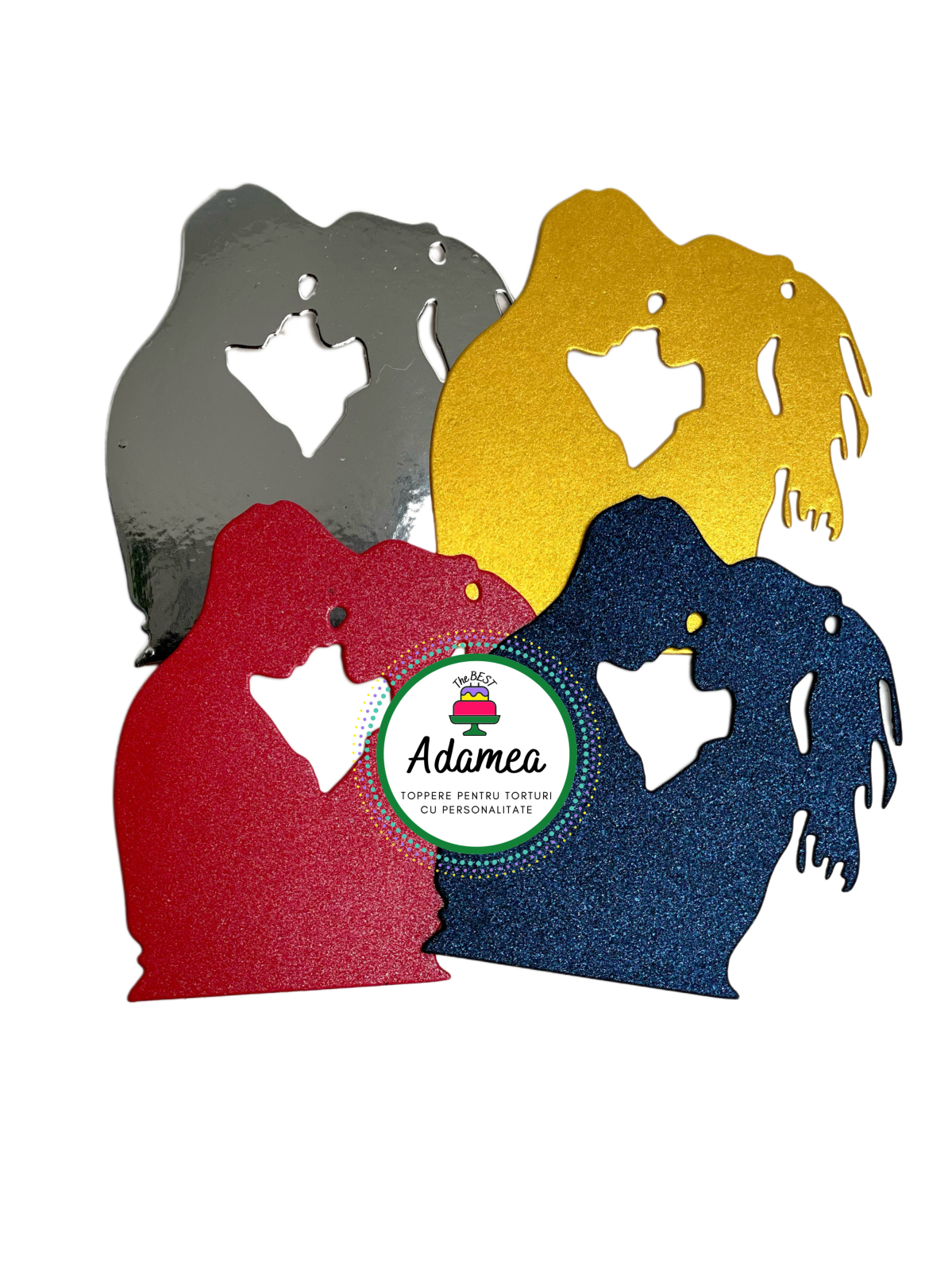Un simbol al iubirii intense și al conexiunii profunde, acest topper cu siluetă de cuplu îndrăgostit este realizat din carton sidefat roșu, cu un efect elegant și catifelat, care captează lumina discret și oferă tortului un aer sofisticat. Decupajul delicat, cu detalii atent lucrate, transformă acest decor într-un accent vizual puternic, ideal pentru momente speciale dedicate iubirii.