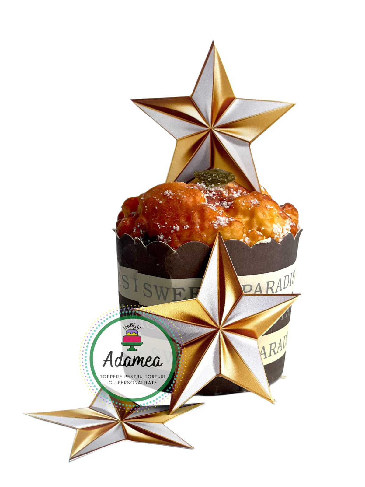 ✨ Fă-ți tortul să strălucească la propriu cu setul nostru de 3 steluțe 3D în nuanțe elegante de alb și auriu! Fiecare steluță are 6,5 cm și creează instant un efect spectaculos pe orice prăjitură, tort sau candy bar. Sunt perfecte atât pentru torturile aniversare, cât și pentru deserturile de sărbătoare, aducând un plus de stil și rafinament decorului tău.
