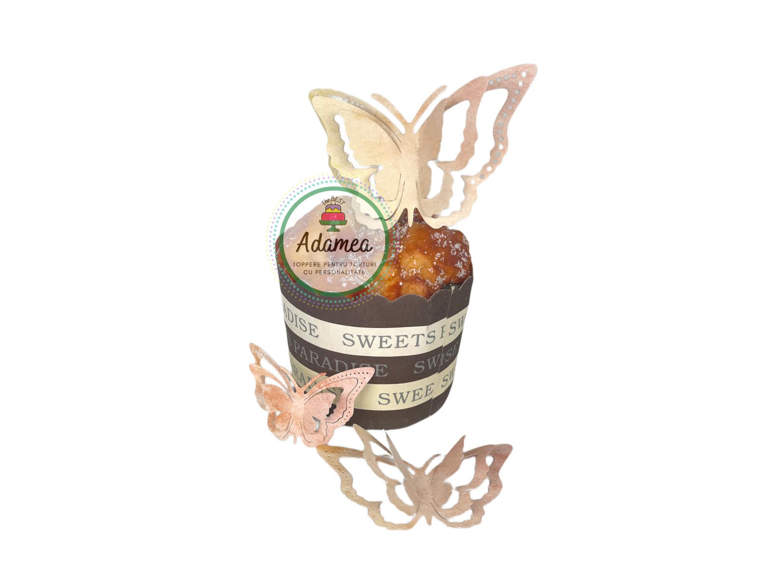 Set de 3 toppere de tort cu fluturi cu efect 3D din carton argintiu oglinda de o frumusețe aparte. Sunt dimensiuni diferite și vin montați cu sisteme de prindere pe tort.