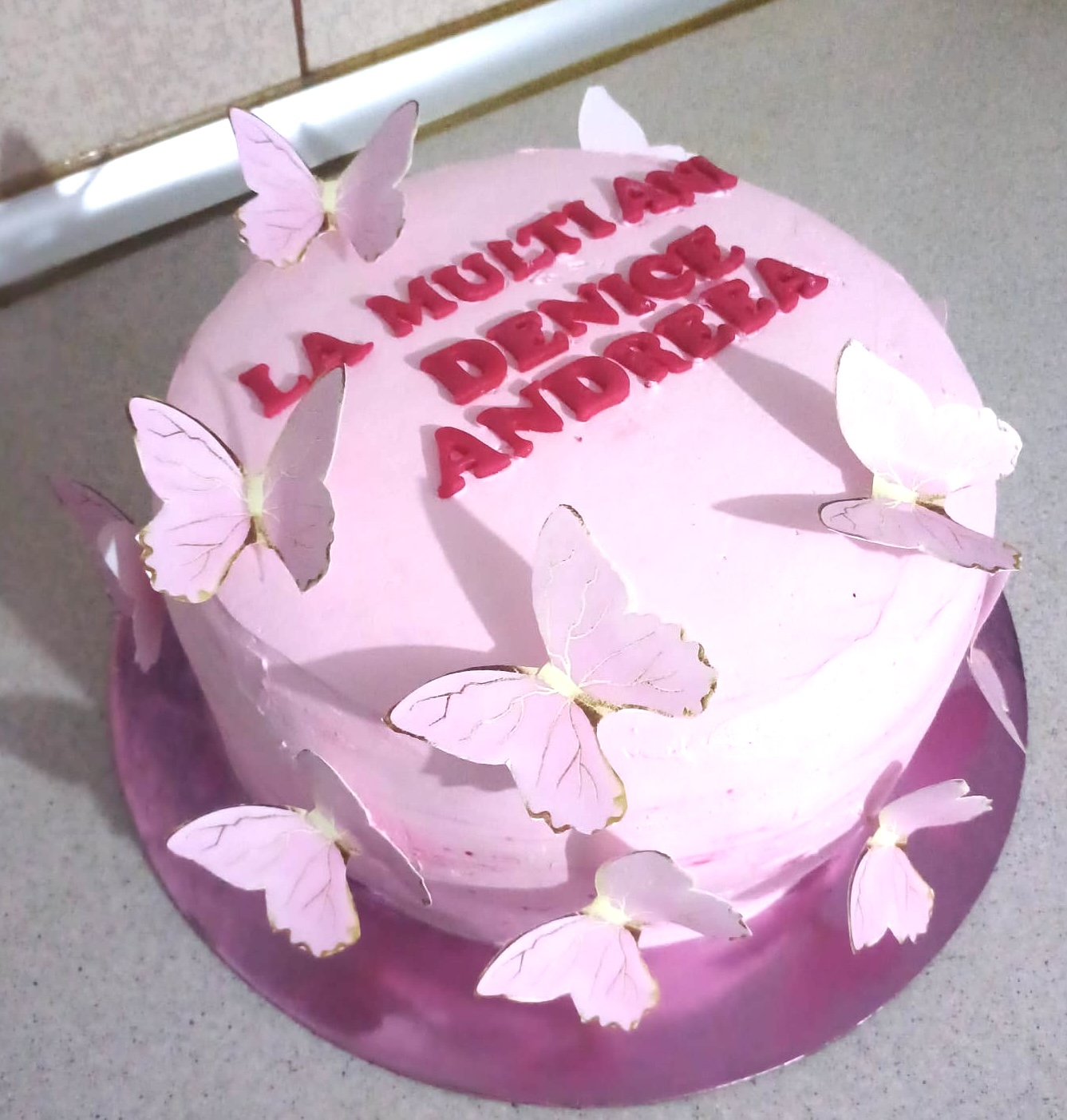 Adamea Set 6 fluturi roz deschis cu galben tip auriu