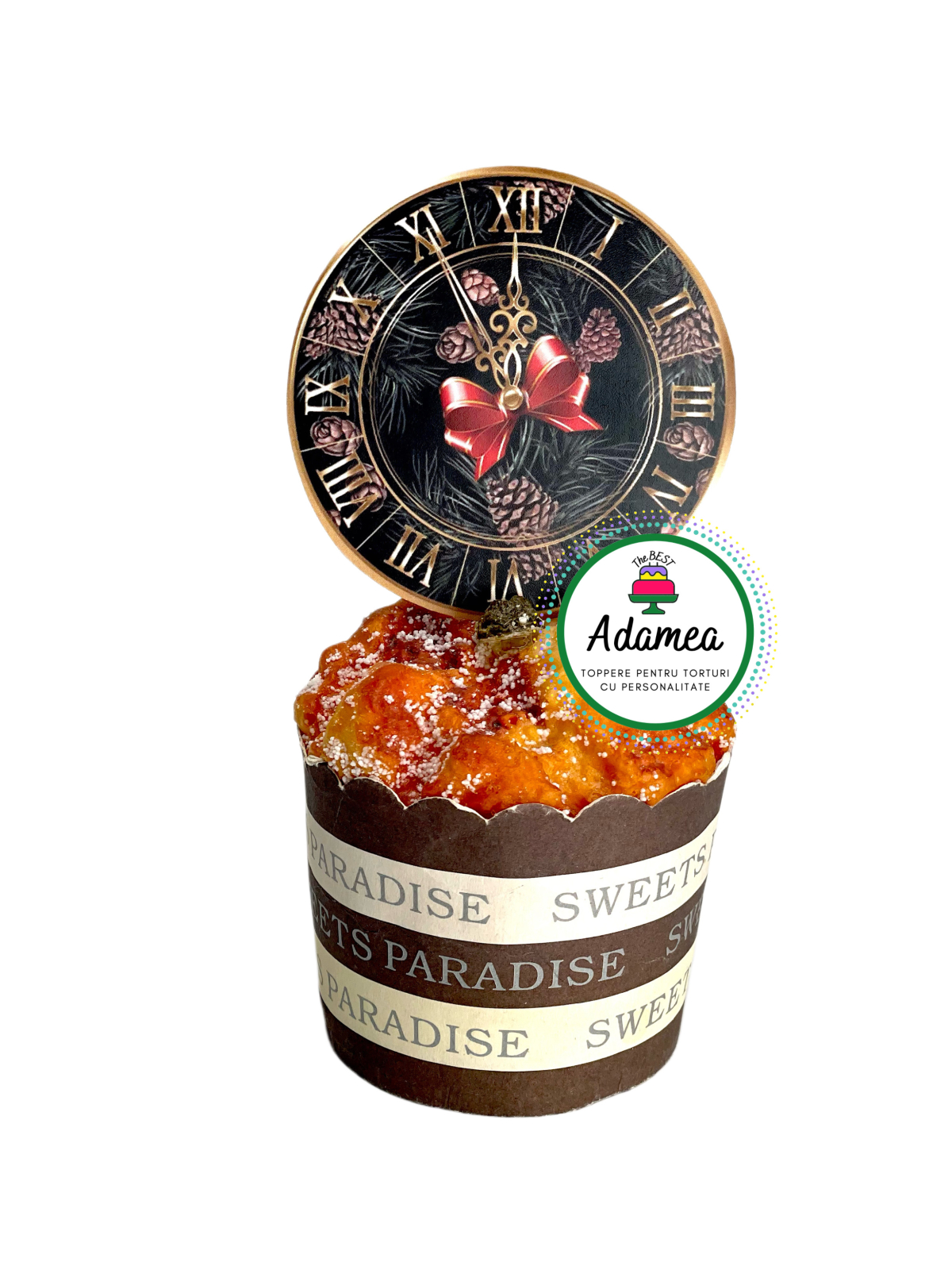 Realizat din carton de calitate superioară, cu print detaliat și culori intense, stegulețul are un diametru de aproximativ 7,5 cm. Cadranul de ceas este pus în valoare de accente festive care îl fac ușor de remarcat, fără a încărca vizual tortul. Este o alegere inspirată atât pentru torturi clasice de Revelion, cât și pentru deserturi moderne, individuale sau candy bar.