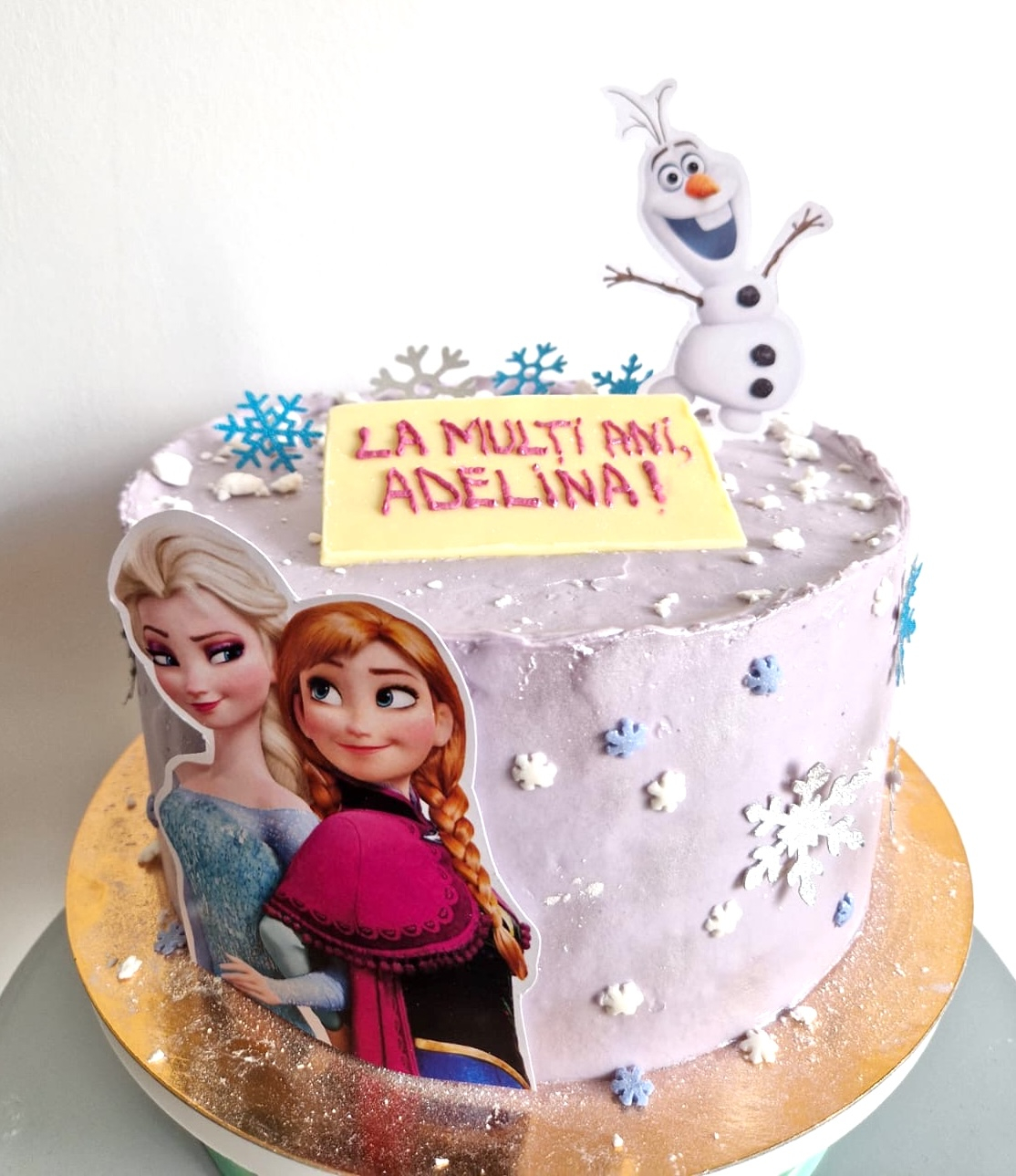 Adamea Topper tort frontal mare cu bust Elsa si Anna cu pelerina fucsia